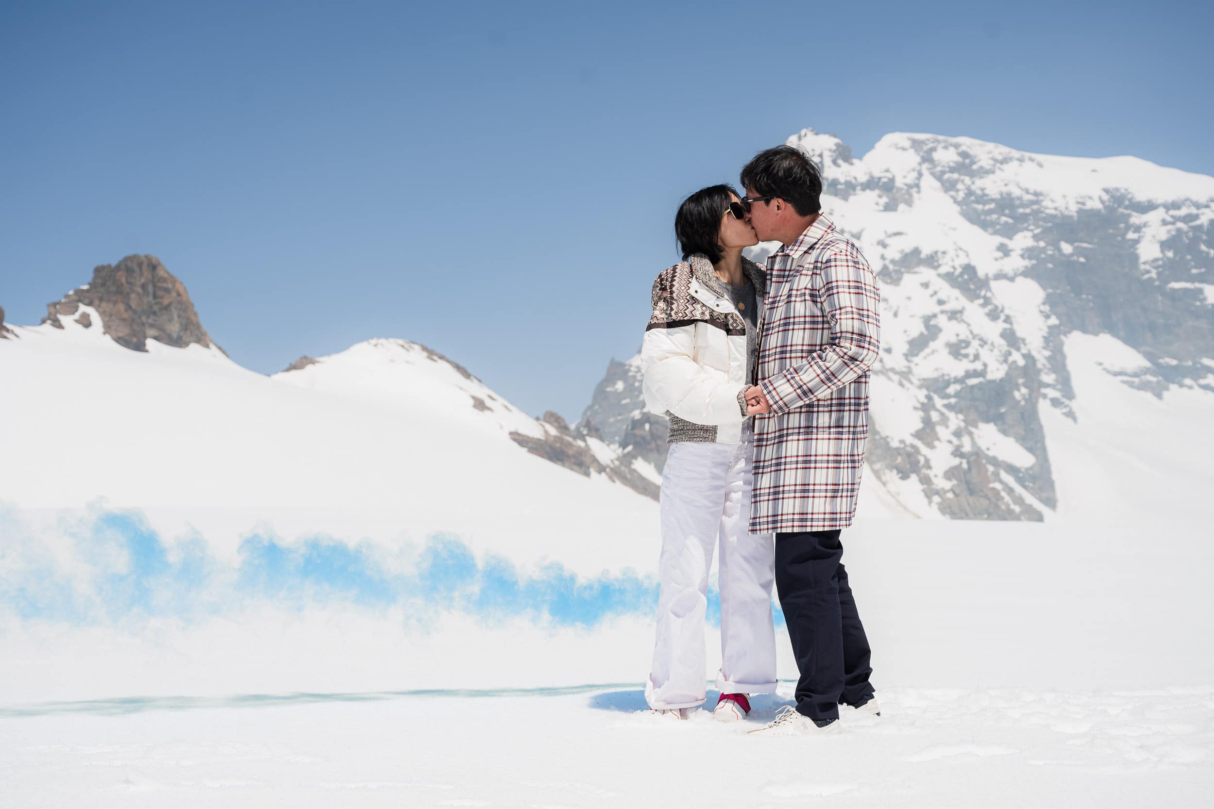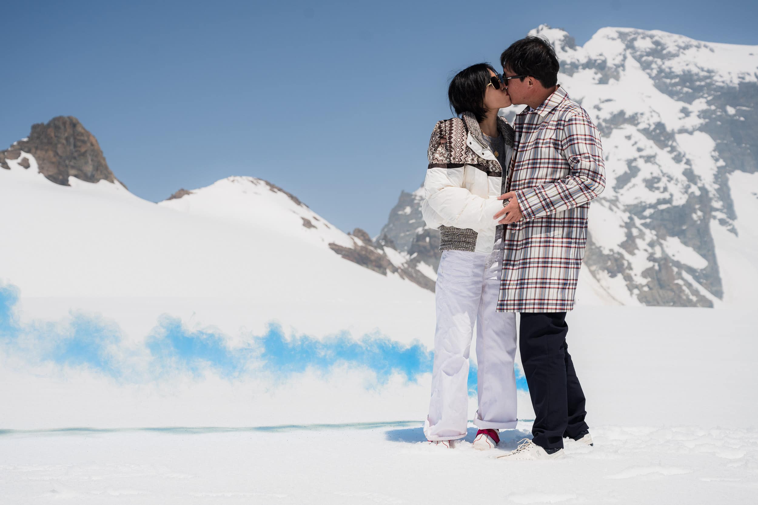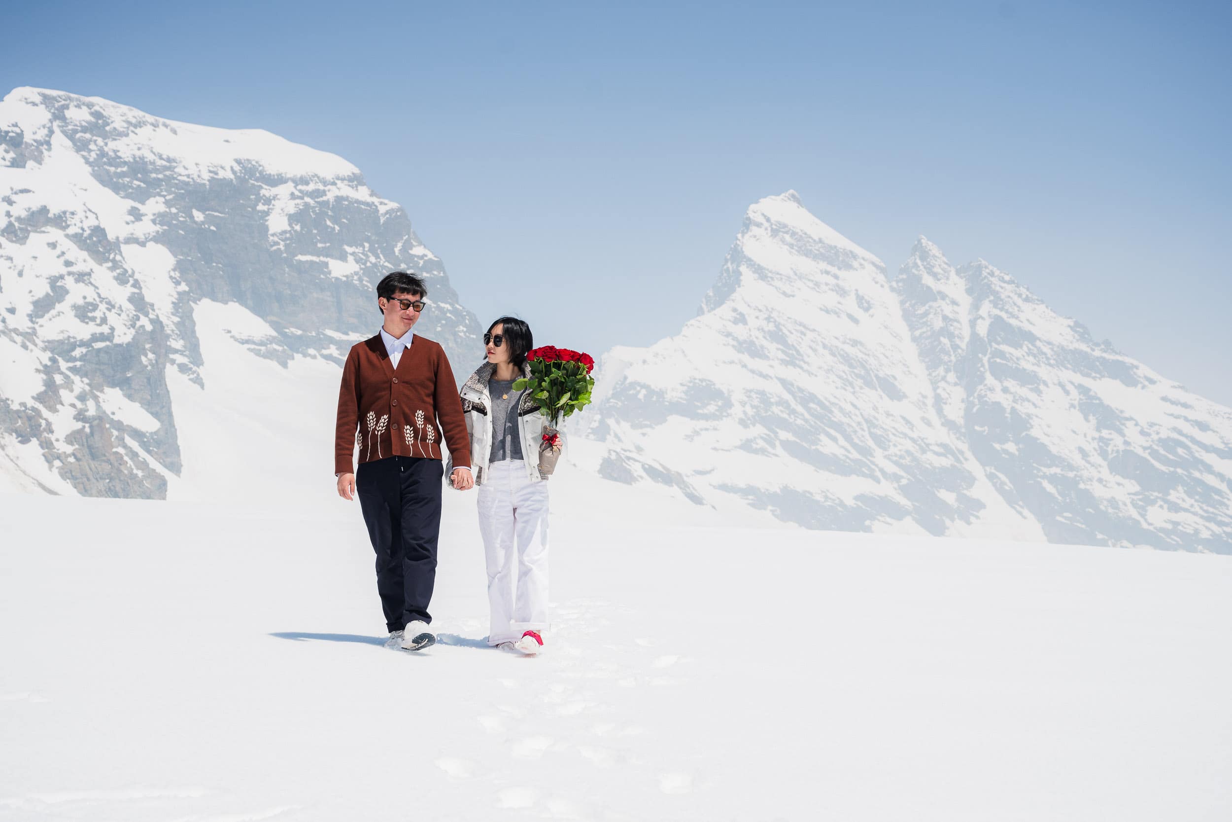 A once-in-a-lifetime helicopter proposal starting at the Bürgenstock and flying to the snow-covered glacier of Petersgrat. The proposal and portrait session took place high in the Alps, surrounded by untouched snow and dramatic mountain scenery. After returning to the Bürgenstock, the experience continued with a relaxed photo session in the spa garden, combining alpine adventure with refined elegance. A discreet and cinematic approach documenting an unforgettable proposal in the heart of Switzerland.
