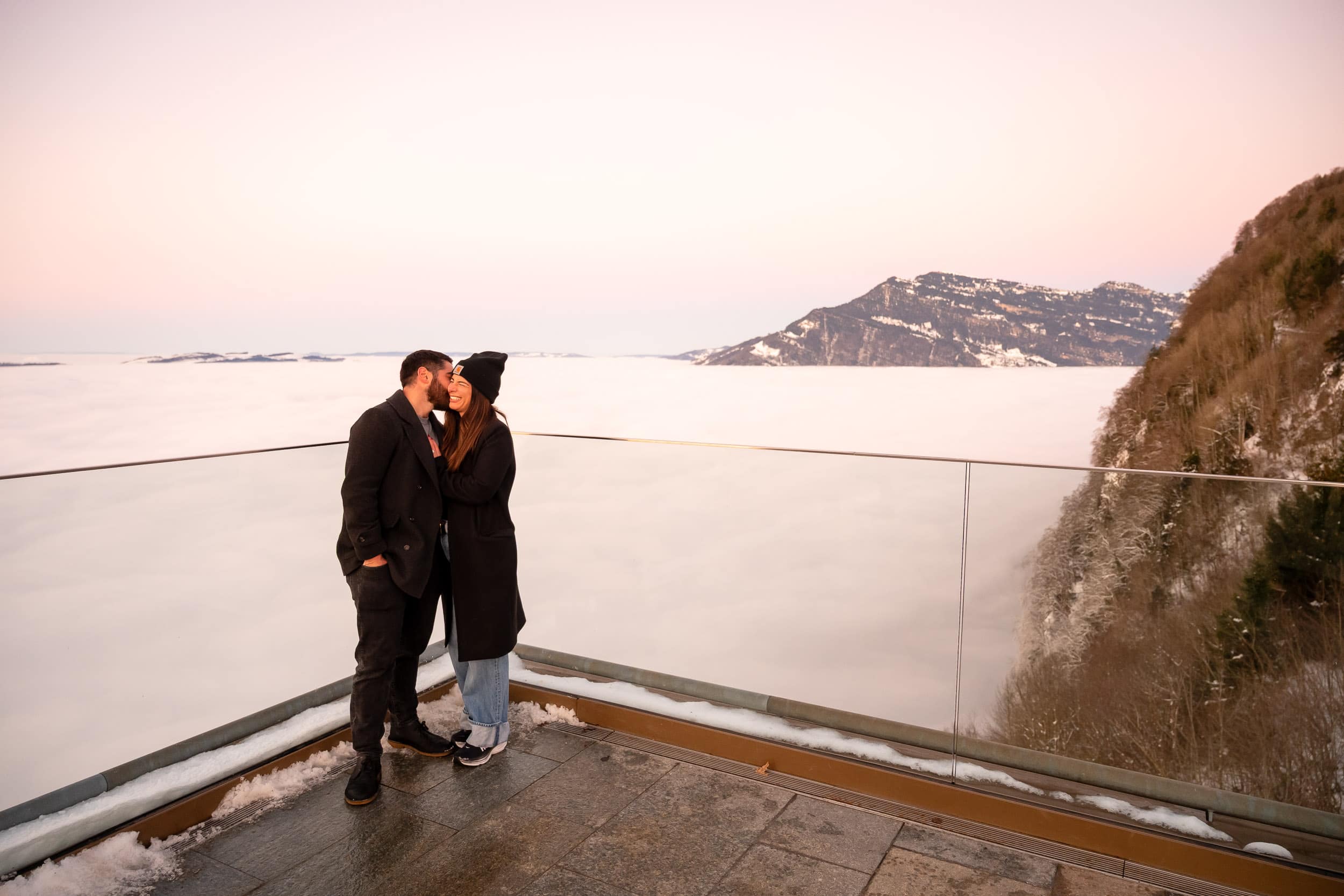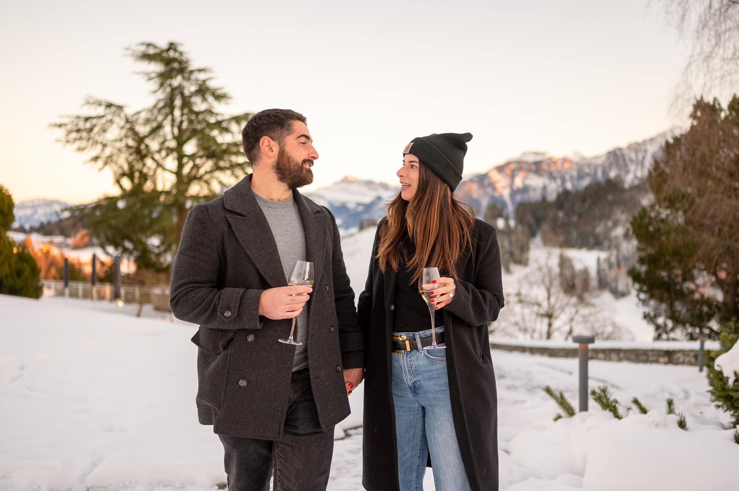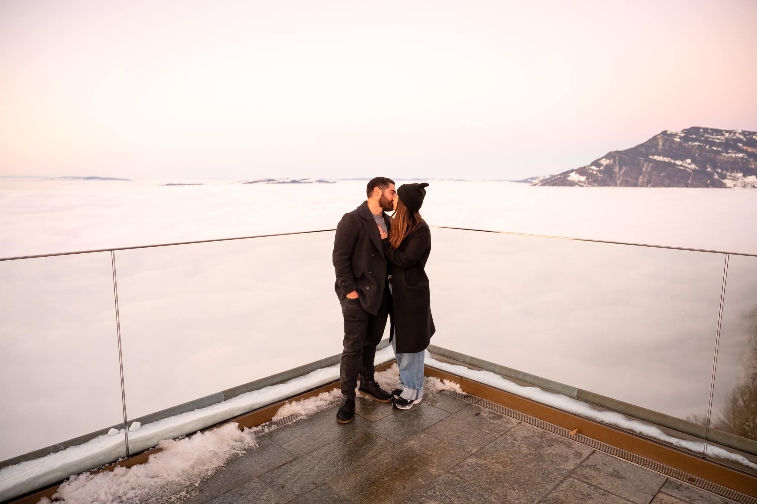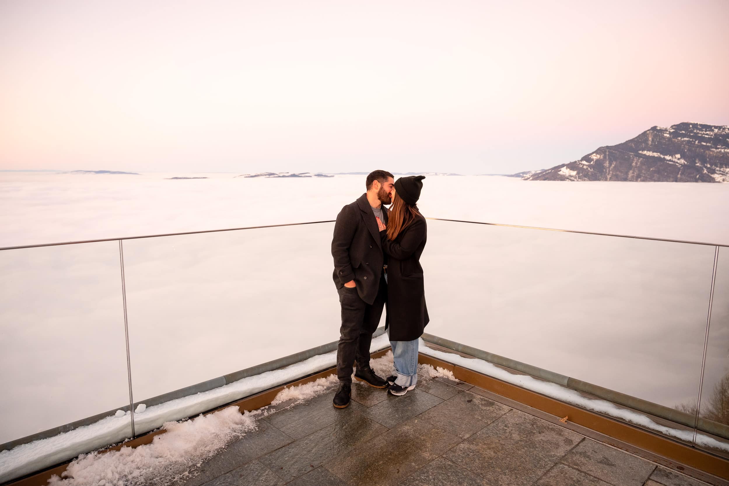 A romantic winter proposal captured at the Bürgenstock, surrounded by fresh snow and a soft, moody winter atmosphere. The proposal took place in a secluded cave, followed by a relaxed photo session in the spa garden and on the piazza, overlooking the lake beneath a dramatic layer of winter clouds. A discreet, cinematic approach documenting an intimate moment in one of Switzerland’s most iconic locations.