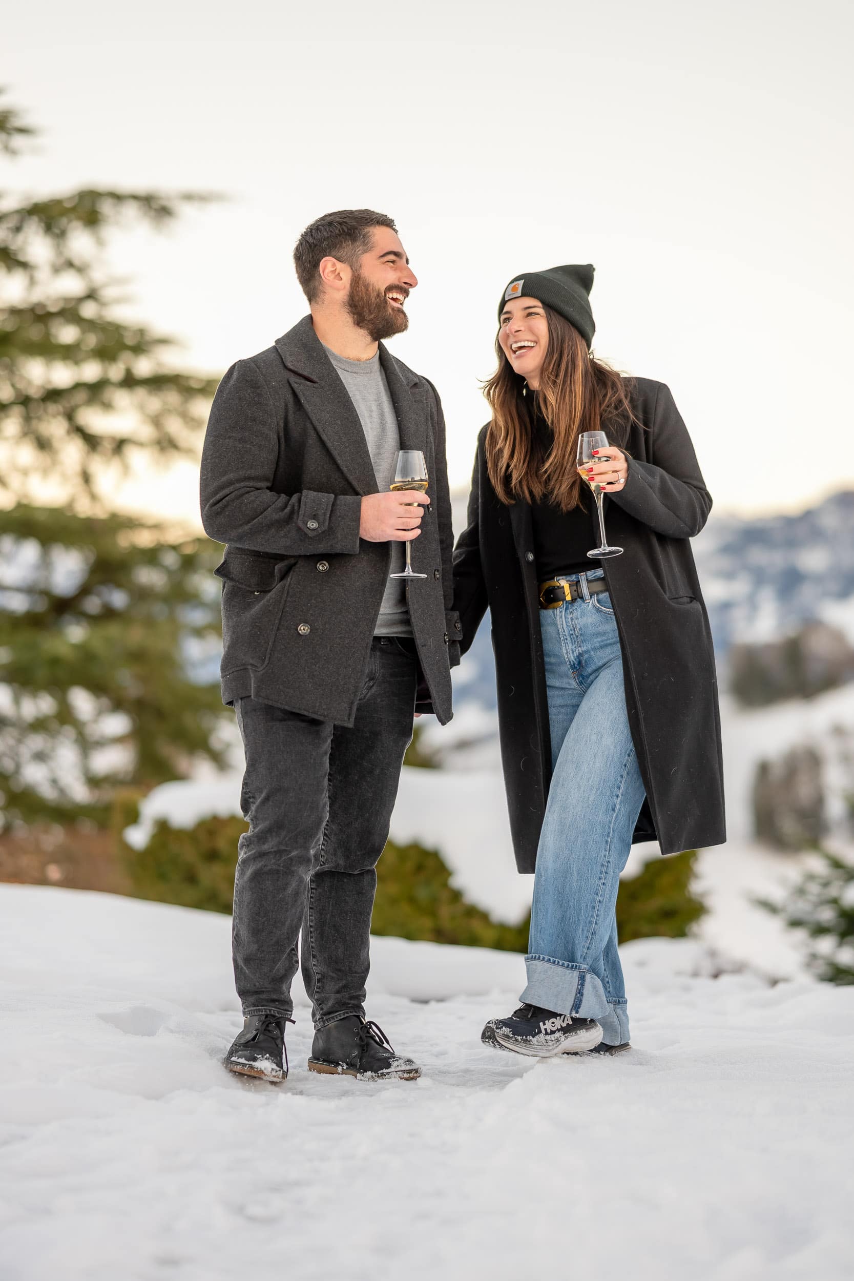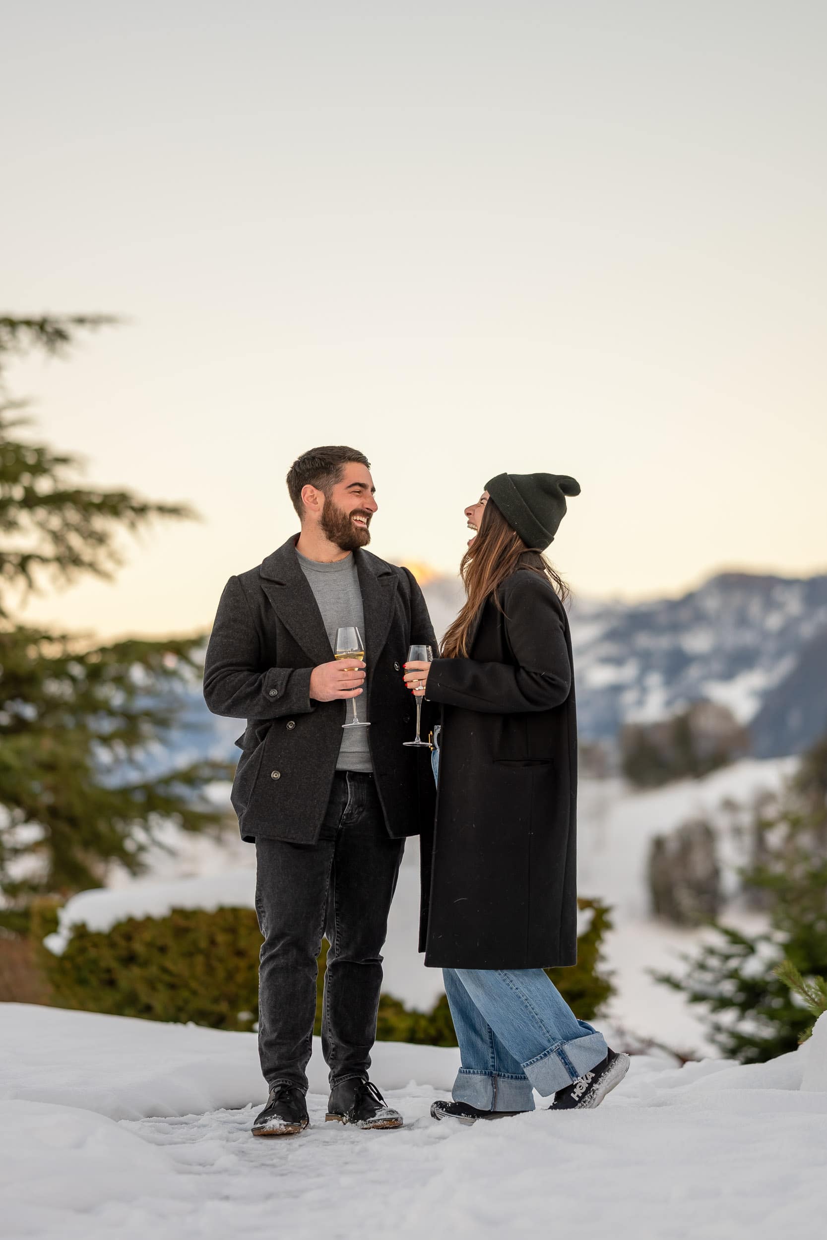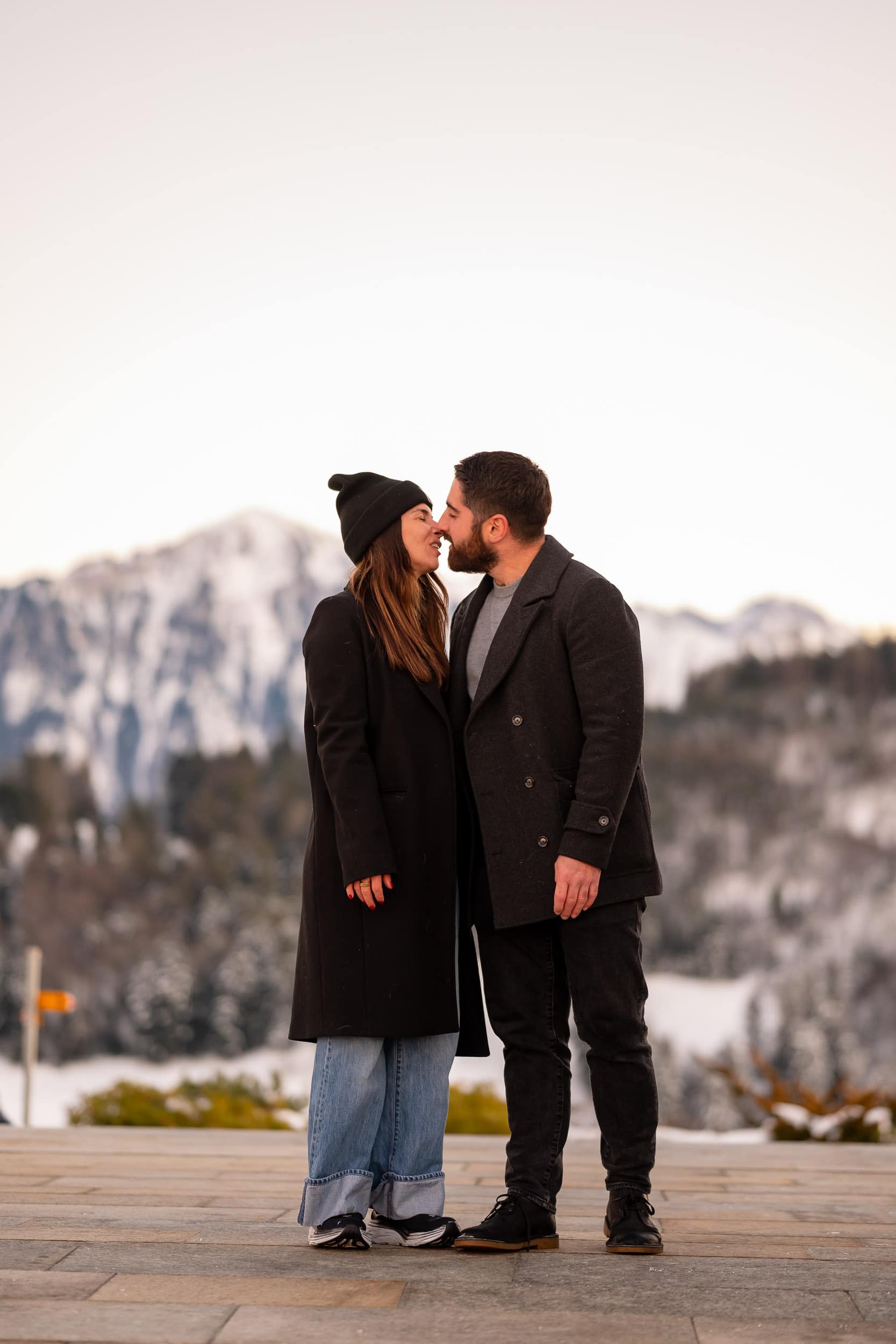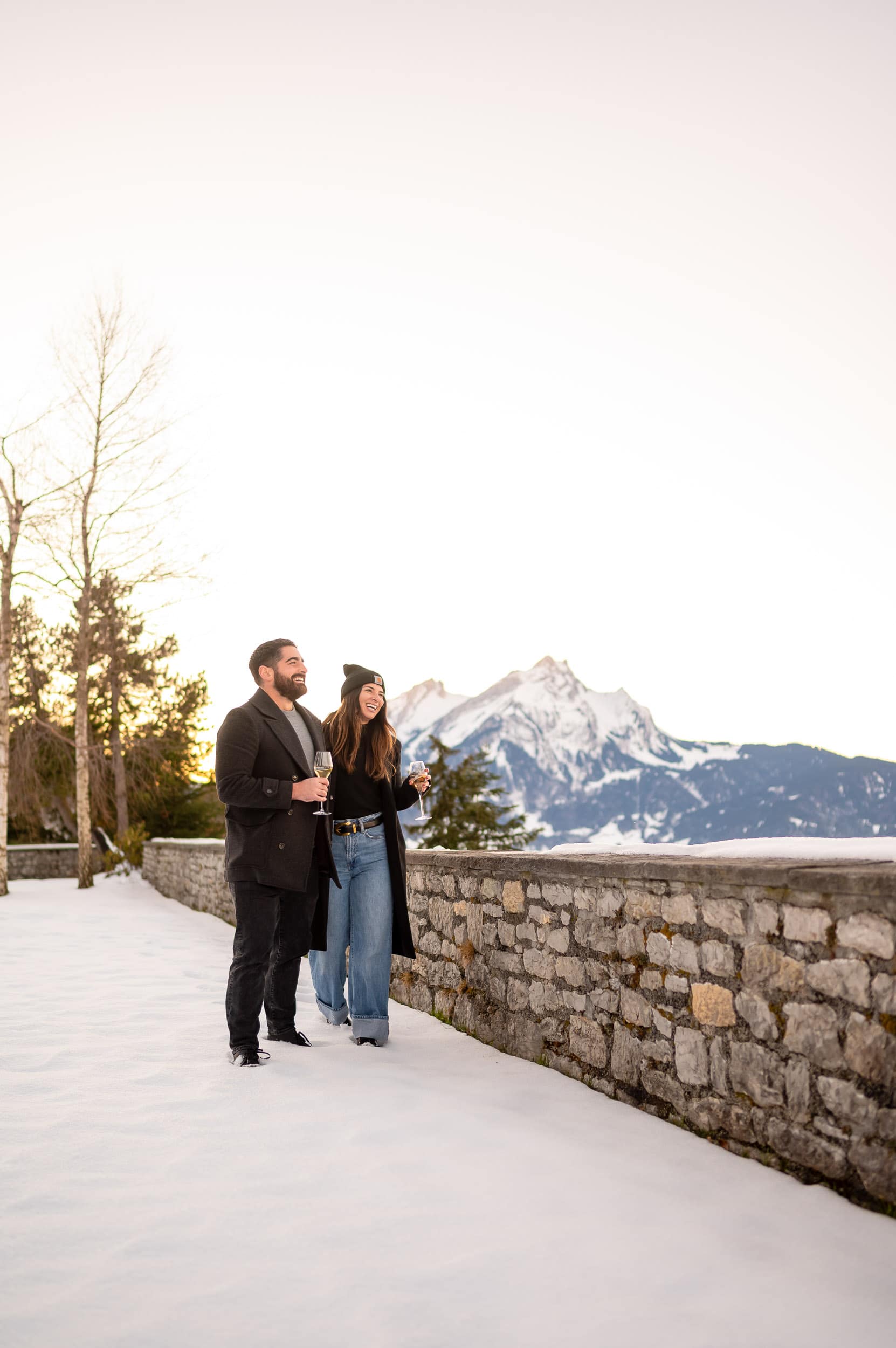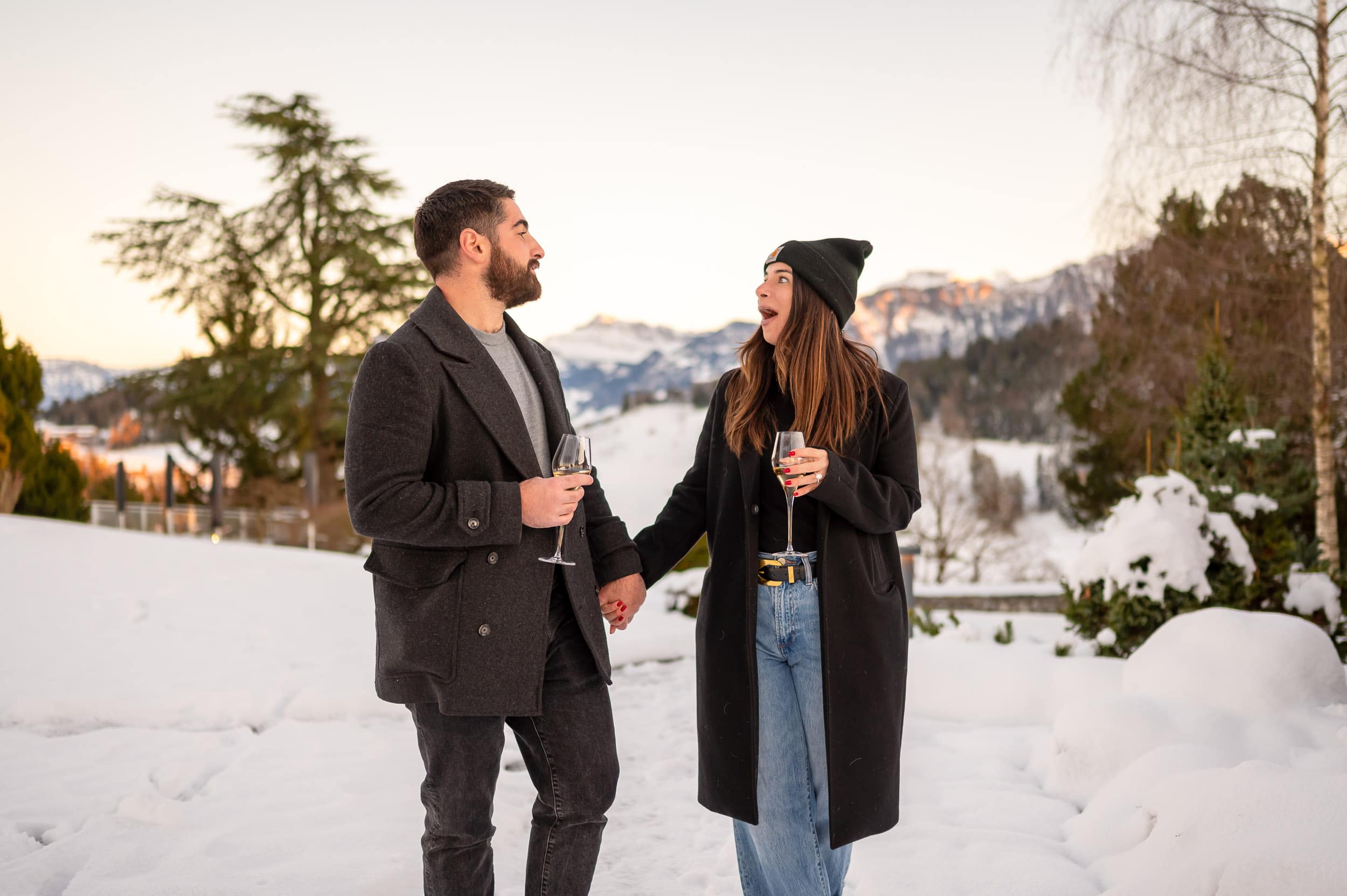 A romantic winter proposal captured at the Bürgenstock, surrounded by fresh snow and a soft, moody winter atmosphere. The proposal took place in a secluded cave, followed by a relaxed photo session in the spa garden and on the piazza, overlooking the lake beneath a dramatic layer of winter clouds. A discreet, cinematic approach documenting an intimate moment in one of Switzerland’s most iconic locations.