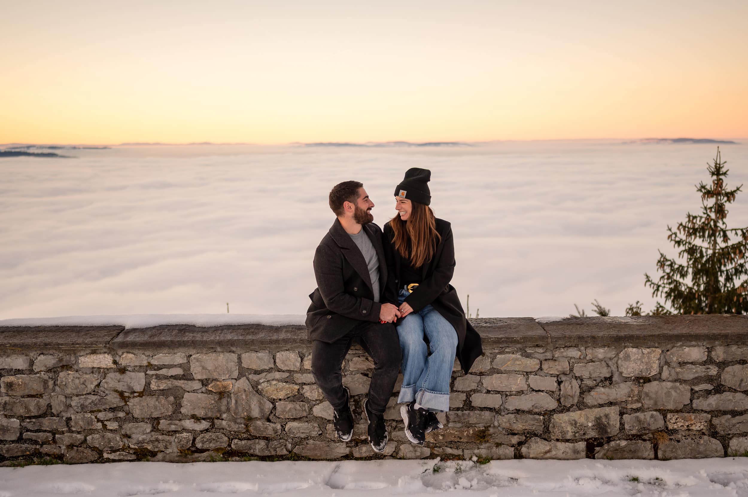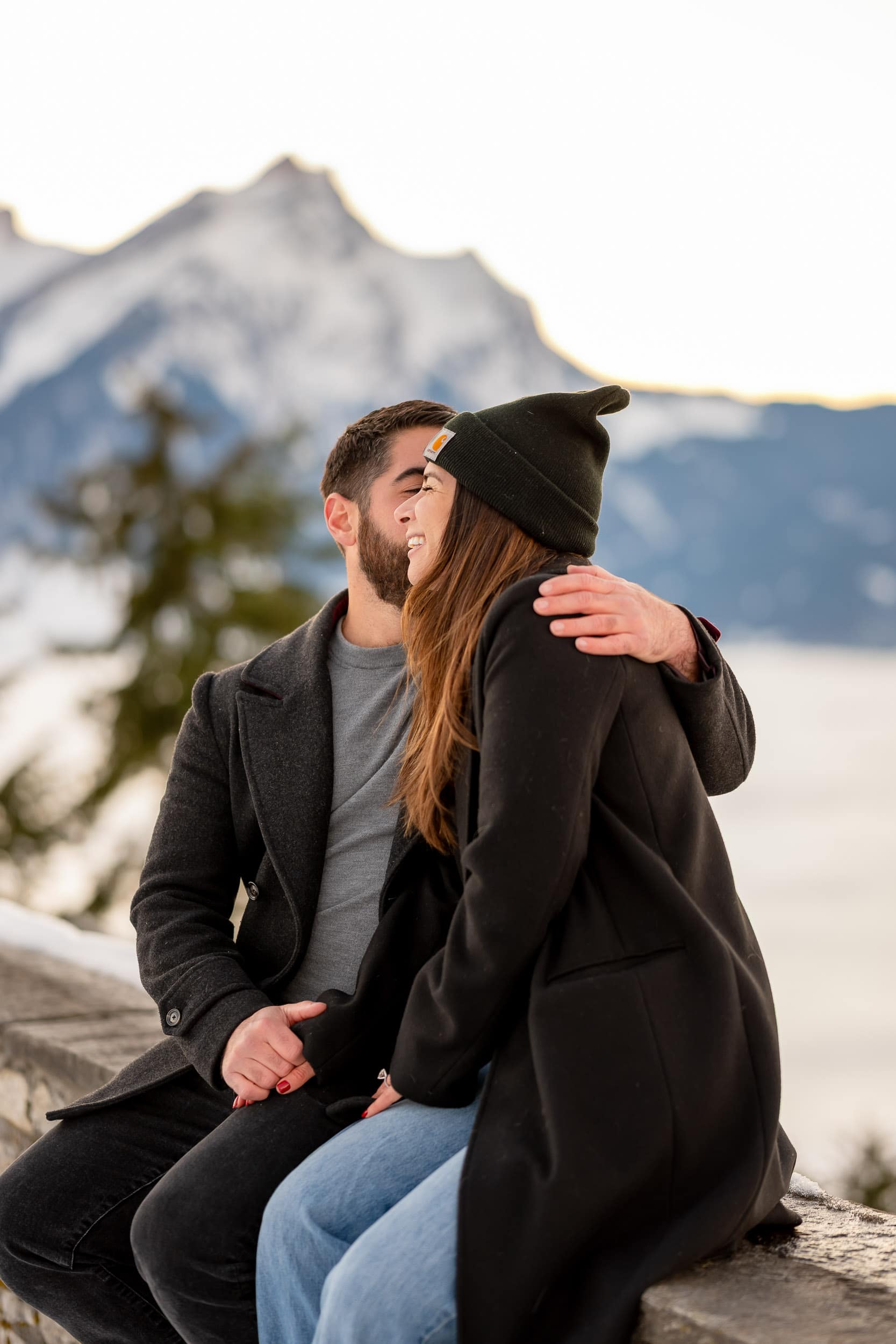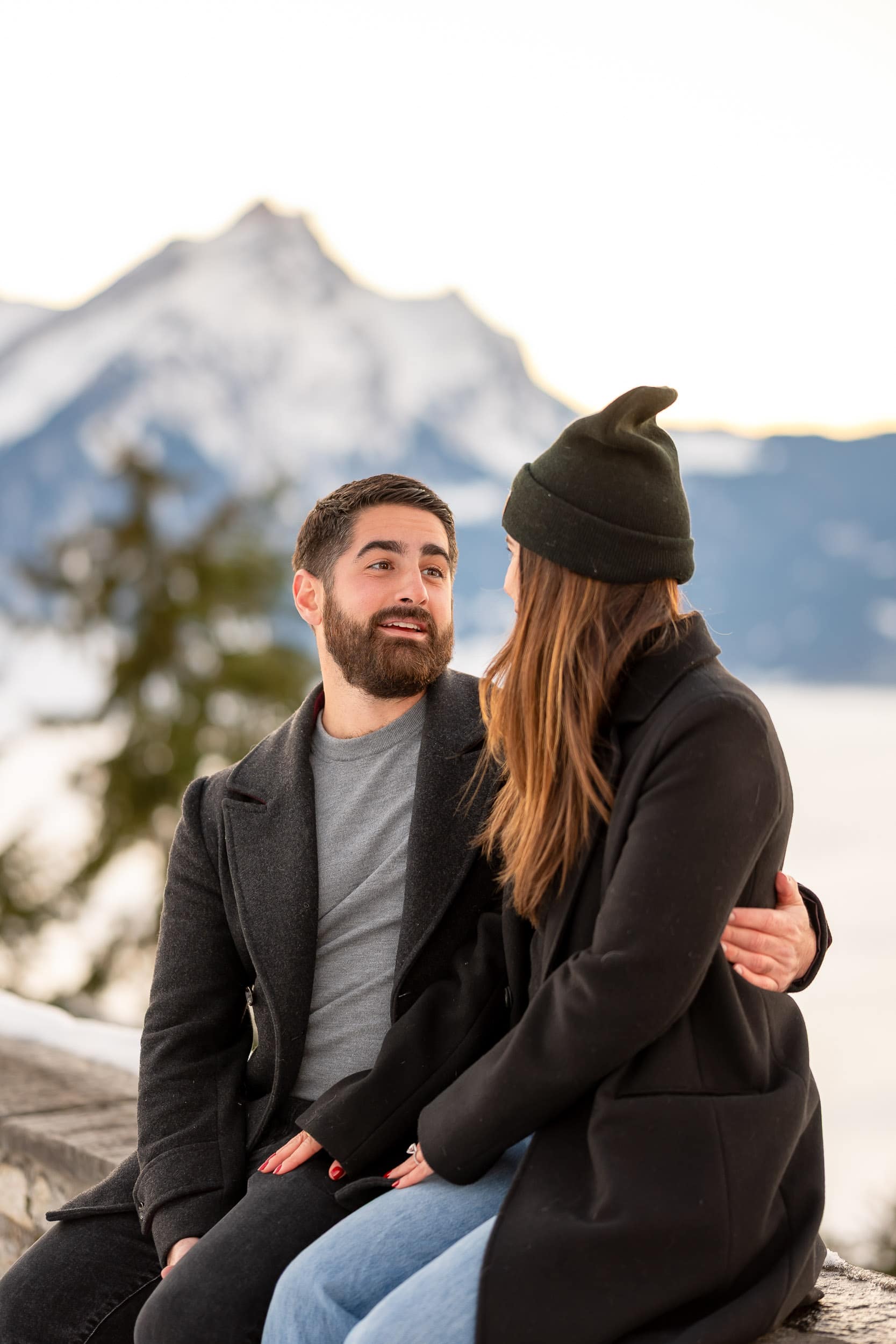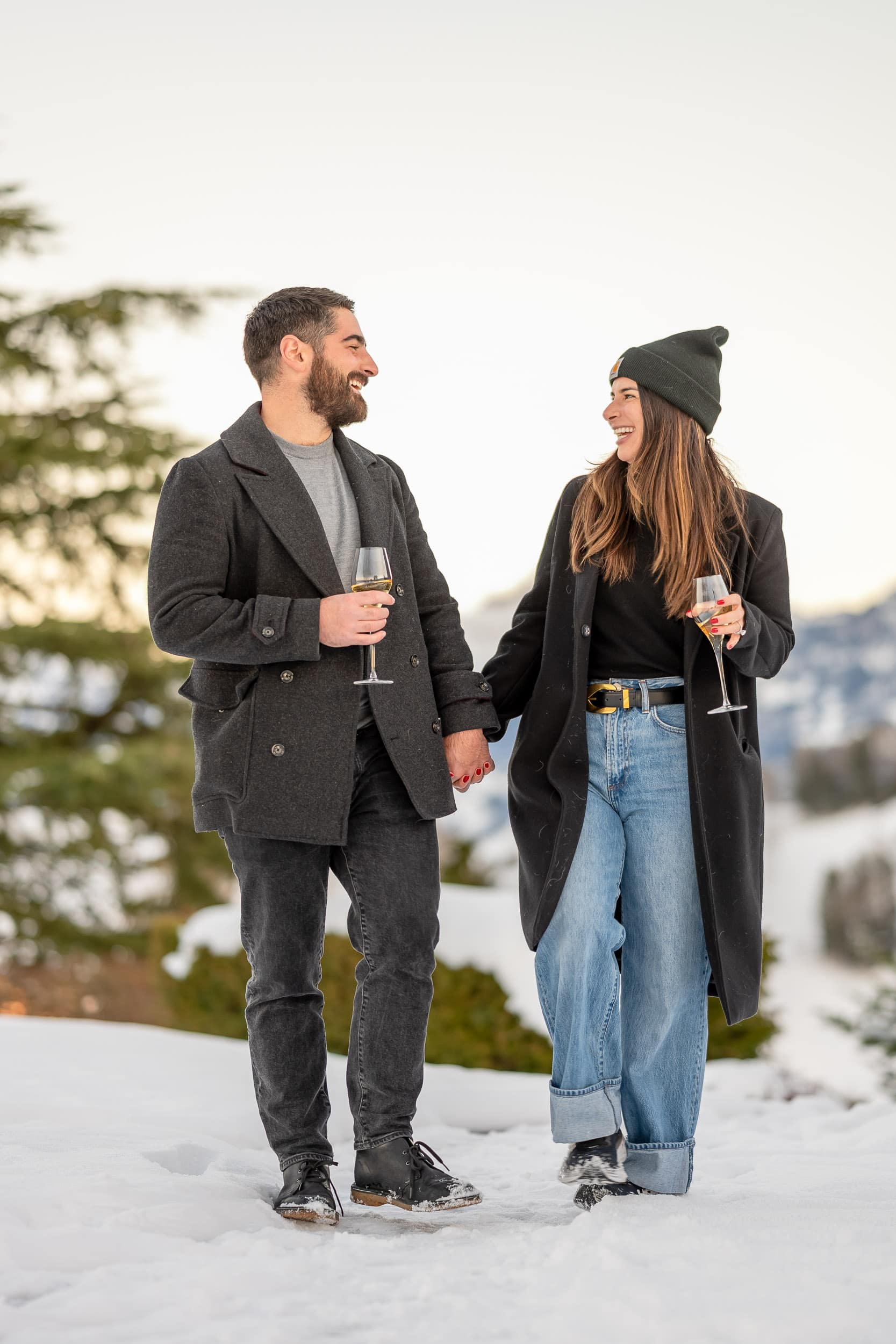 A romantic winter proposal captured at the Bürgenstock, surrounded by fresh snow and a soft, moody winter atmosphere. The proposal took place in a secluded cave, followed by a relaxed photo session in the spa garden and on the piazza, overlooking the lake beneath a dramatic layer of winter clouds. A discreet, cinematic approach documenting an intimate moment in one of Switzerland’s most iconic locations.