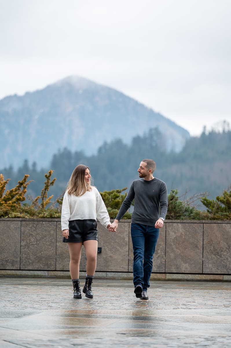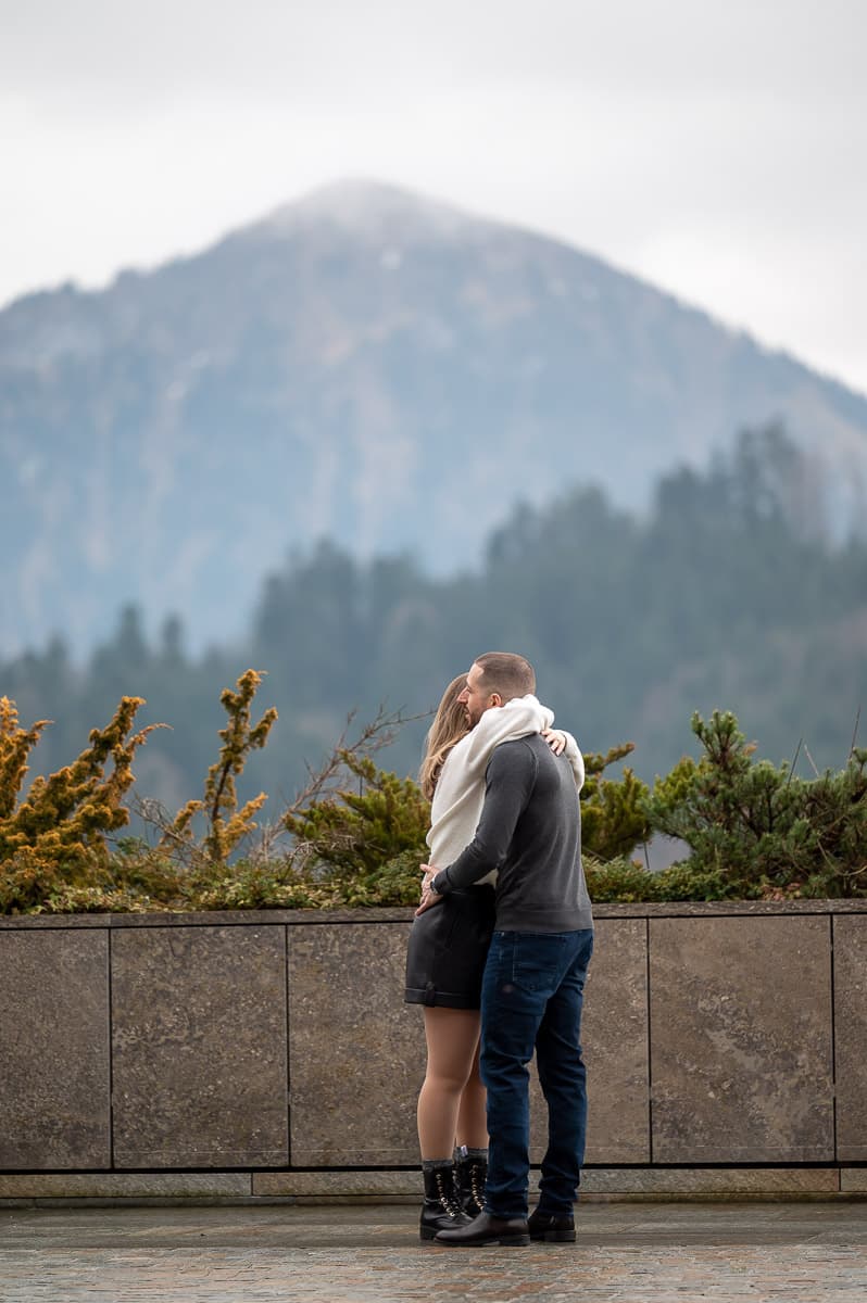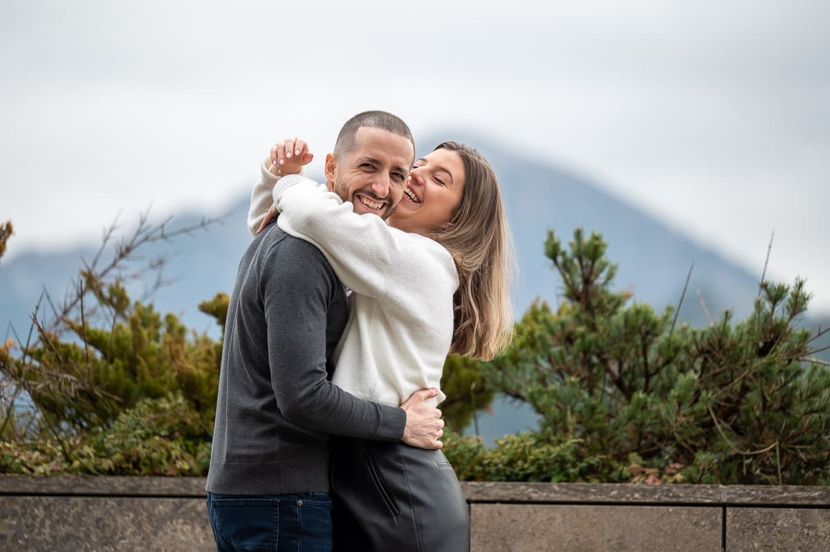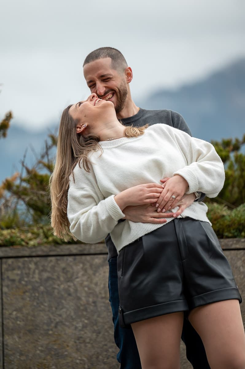 After the proposal, we continued with a relaxed couple photoshoot outdoors. Surrounded by winter light, mountains and the expansive landscape of the Bürgenstock, the focus naturally shifted to connection, emotion and presence rather than staged moments. The contrast between the cozy interior and the open alpine scenery made this experience especially unique.